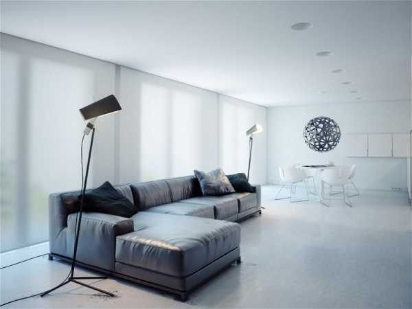 Белая гостиная в стиле минимализм должна быть большой, эстетичной и комфортной. Её девиз «отрицание бесполезной роскоши и богемного образа жизни».