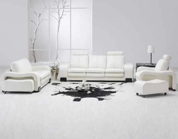 На данный момент существует огромный выбор белоснежной мебели для оформления гостиной комнаты. Такая мебель способна привнести шик в любое помещение, и облагородить пространство. Как элемент декора можно использовать белоснежный рояль или камин. Белый тон выигрышно выделяется на фоне более темных стен. Украшают интерьер гостиной картины и фото в рамах белоснежного оттенка с добавлением позолоты. Для любителей контраста существует мебель, в которой идеально сочетаются белый цвет и текстура темного дерева. Разнообразие такой мебели позволяет использовать данный оттенок и в детских комнатах, ваннах и кухнях.