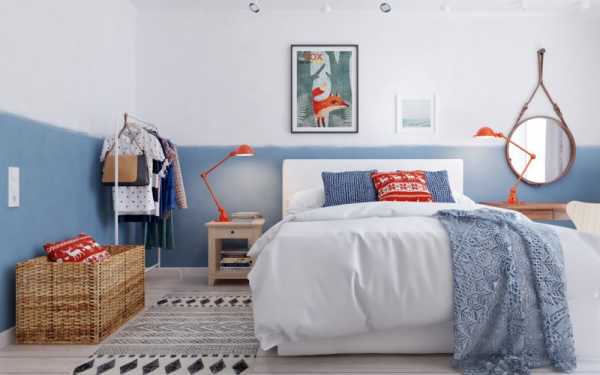 - Молодежный и стильный интерьер можно получить в результате смешивания белого и ярких тонов красного, синего, желтого, зеленого и фиолетового цветов.