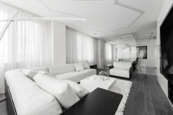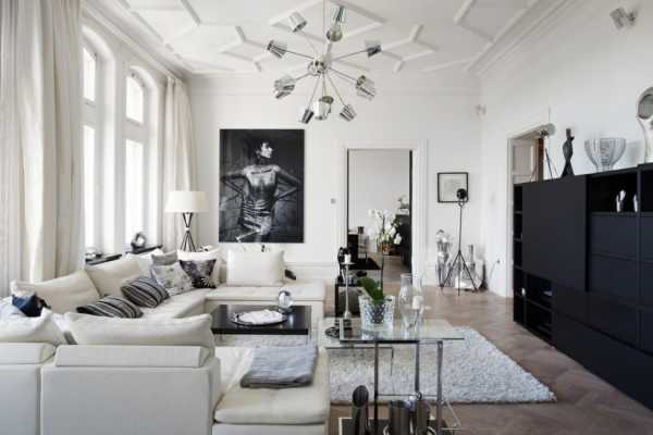Гостиная в бело-черных тонах: монохромное величие универсального помещения