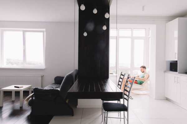Как ни странно, в гостиной, характеризующейся преобладанием черного цвета, будет создаваться атмосфера уюта и уединения. Но если ваша комната характеризуется небольшой площадью, сделайте ставку на доминирование белого, тогда как черный используйте для зонирования помещения. Преобладание белого позволит устранить дефицит света и свободного пространства, а также привнесет в интерьер атмосферу зимней свежести и первозданной чистоты.