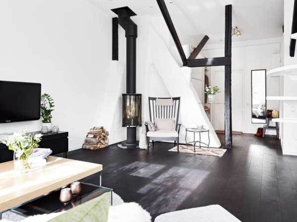 Скандинавская гостиная – это белые стены с редкими яркими элементами, светлый, обязательно деревянный, пол и нейтрального оттенка мебель.