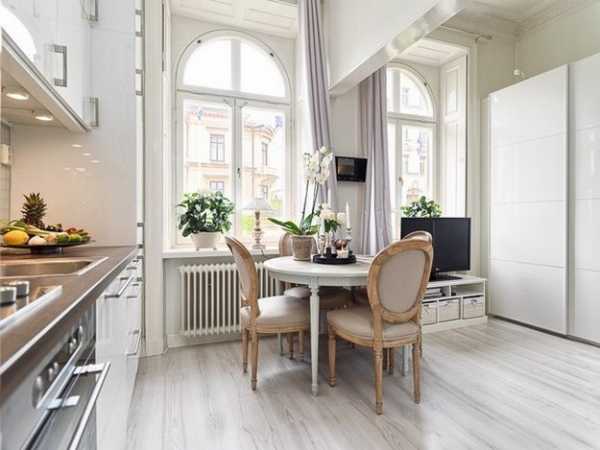 Если же в белом цвете будет оформлена кухня, то ее можно отнести к современному стилю. Пол на кухне можно покрыть светлым паркетом. Так же удачно будут смотреться хромовая посуда.