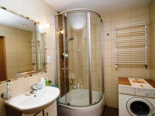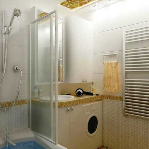 3. Дополнительное пространство может дать установка душевой кабины. Таким образом, получается около 1м2 свободного места, на которое прекрасно станет наша стиральная машина или биде.