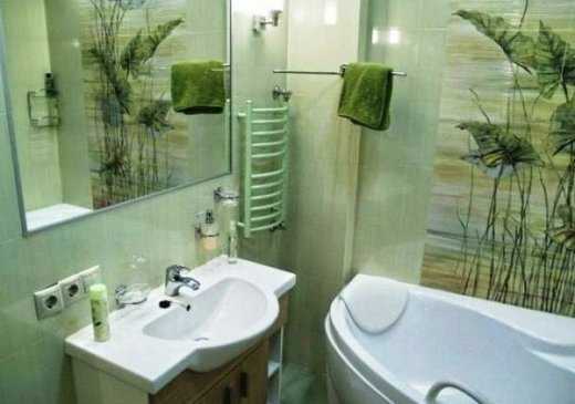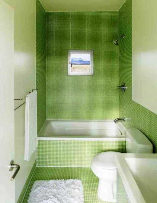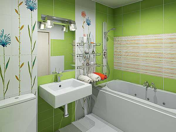 Замечательный пример того, как можно украсить ванную комнату с помощью керамического панно. Нежно-зеленая палитра помещения делает его светлее и визуально больше.