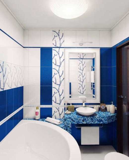 Наиболее популярный вариант для оформления маленькой квадратной ванны. Вертикальные вставки – очень удачное решение, делающее комнату зрительно выше.