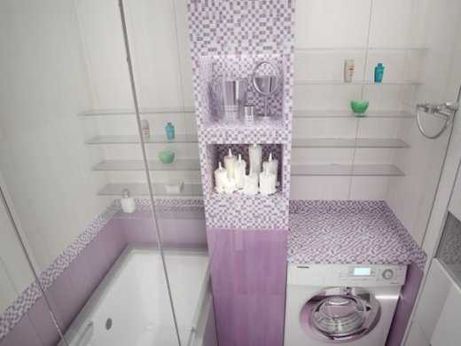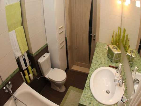 2. При количестве жильцов более 4-х объединять ванную с туалетом не целесообразно, это будет создавать определенные неудобства. Здесь приходится создавать дизайн на ограниченном пространстве. Так, чтобы появилась свобода, можно подумать над установкой, к примеру, умывальника без ножки, выигранное пространство можно использовать для стиральной машины или шкафчиков для полотенец. Стоит рассмотреть такой вариант, как вынос стиральной машины на кухню или в прихожую. Хотя такой вариант и не совсем приемлем из-за маленьких площадей.