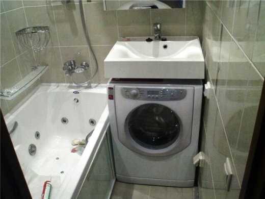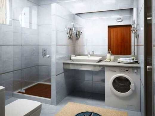 - Вместо классической тумбочки под раковиной можно поставить встраиваемую компактную стиральную машину. Кроме этого, используйте варианты вертикальных устройств или новых уникальных решений – подвесных конструкций. Сейчас вся бытовая техника выполняется для максимального удобства использования, поэтому не ограничивайте себя в вариантах;