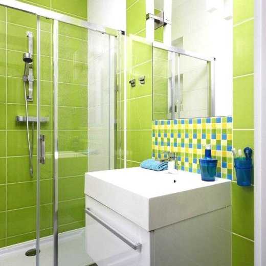 Для визуального увеличения пространства, создания легкости рекомендуется использовать кафельную плитку по возможности светлых тонов, подойдет голубая, розовая, бежевая, салатовая. А вот белая придаст статус медицинского учреждения. Цветовые изменения лучше делать по диагонали стены. Еще одним вариантом, который подойдет для небольших ванных, будет использования контрастной плитки на разных стенах, а также зонирование. Например, зона ванны оформлена в одном тоне, зона саузла и зеркала – в другой цветовой гамме. Выбирайте для облицовки плитку с глянцевым покрытием и вертикальным рисунком.