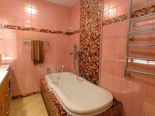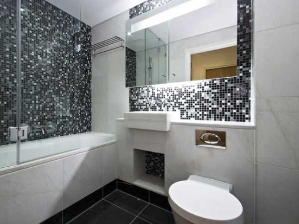 Хорошо: При выборе плитке можно отдать предпочтение и мозаике. Сантехника на фоне мозаичной плитки отлично смотрится, создается впечатление большого пространства.