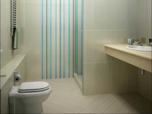 Очень функциональное решение – отделить душевую кабинку стенкой. А вертикальные вставки, которые присутствуют во многих вариантах отделки, визуально поднимают потолки.