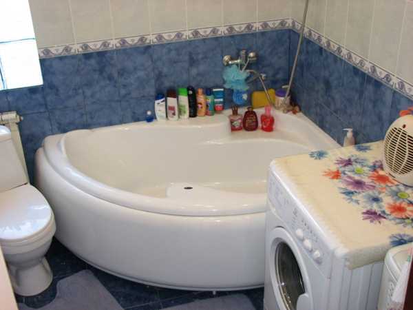 Угловые ванные достаточно часто используют для маленьких комнат, поскольку они достаточно компактные и позволяют сэкономить место.