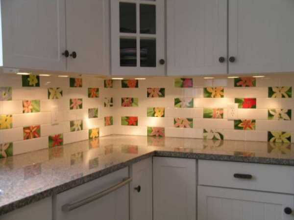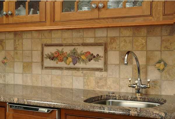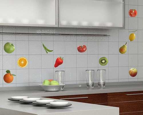 * На фартук кухни можно использовать художественные композиции. Они станут отличным декором в кухне. Их можно располагать по центру стены или же в угловой части помещения. Сделав фото помещения, можно увидеть, в какой части кухни можно располагать узор.