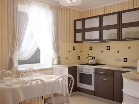 Если же окна кухни выходят на юг, слишком светлых оттенков наоборот следует избегать. В таком случае лучше подумать и более темном оформлении.
