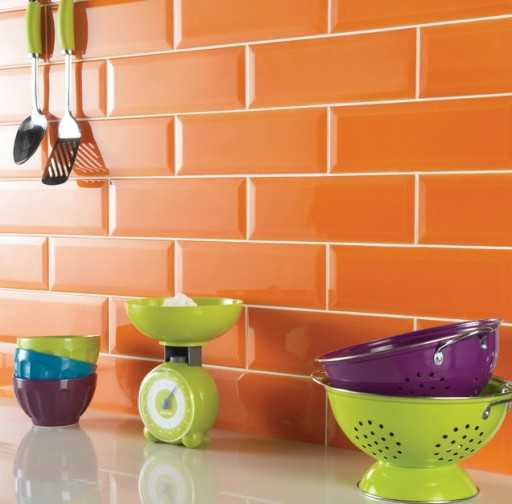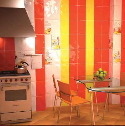 * Ярким кафелем лучше всего облицовывать кухни с большой площадью.