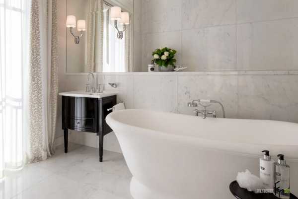 * Стены и пол должны быть выложены плиткой из одной коллекции, таким образом они оптически объединяются и становятся единым целым.