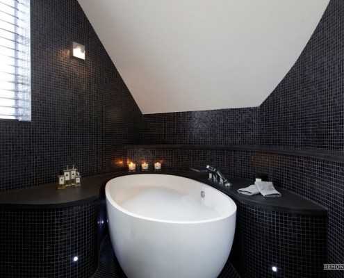 Одна из основных претензий к кафельной плитке для ванной комнаты – ее излишняя геометричность, которая бьет стены на небольшие равные плоскости, тем самым, придавая им оттенок казенности.