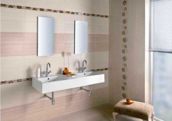 Отделка кафелем ванной с использованием декоративных элементов