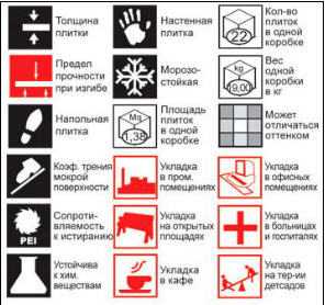 Обозначения на упаковке кафеля