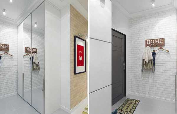Белый кирпич в интерьере прихожей идеален для маленьких помещений