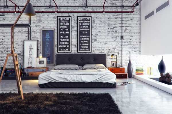 Кирпич в интерьере спальни предполагает использование определённых цветов и материалов для мебели и сопутствующих аксессуаров