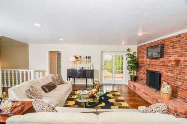 Красный кирпич в гостиной в сочетании с камином просто беспроигрышный вариант