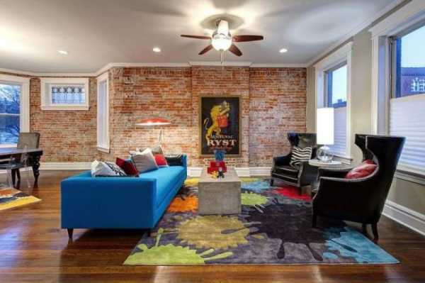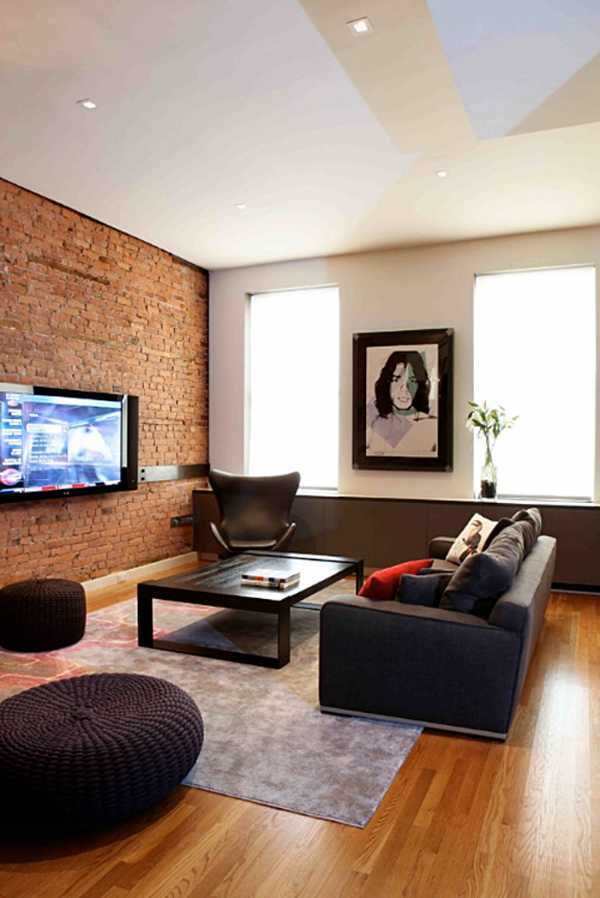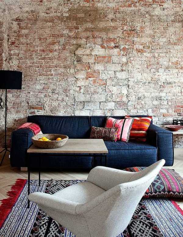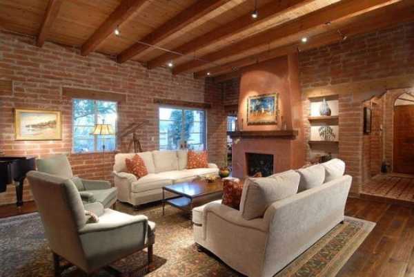 Говоря о гостиной, в которой есть кирпичная стена, можно сказать что эта стена становится центром вашего дома. Стена, которая у Вас получилась не должна отрицать всю обстановку дома и противопоставлять себя всем другим элементам дизайна.