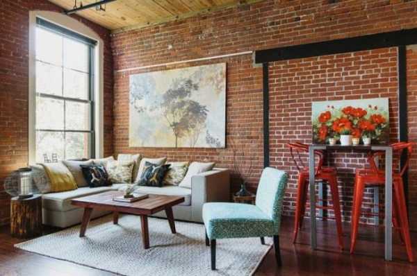 Отделку из кирпича в интерьере российских квартир можно встретить нечасто – это направление дизайна только набирает свою популярность в нашей стране. А вот в государствах Европы и Америки кирпичная кладка вошла в моду еще в середине XX века. Считается, что в основе столь модного сейчас направления лежит заселение промышленных зданий Нью-Йорка небогатой американской молодежью . Финансовые трудности того времени не позволяли собственникам жилья произвести отделку помещений, поэтому стены оставлялись в первозданном виде.