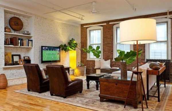 Настоящий кирпич старых мастеров тоже может стать отличным решением для придания стиля гостиной
