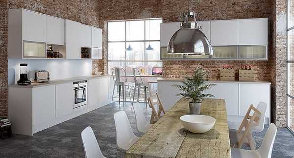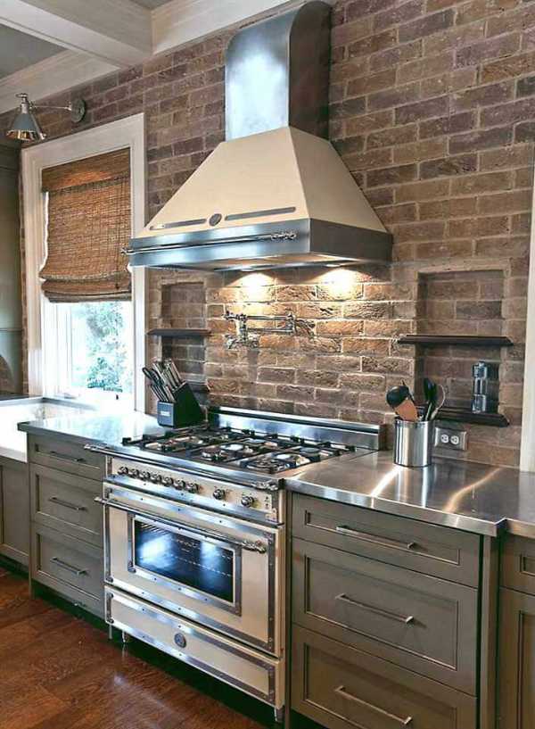 Ответ опять простой — для любых, так как кирпич свободно адаптируется к кухням различного дизайна. Хотите ли Вы иметь кухню в стиле загородного коттеджа, в деревенском, романтический или современном стилях, Вы найдёте приемлемое решение. Кирпич достаточно универсален, чтобы выбрать правильный цвет, текстуру и мебель на кухню, которые будут отлично сочетаться.