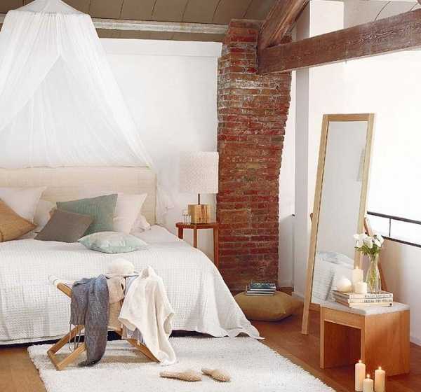Это очень просто. Если Вы боитесь рискованных решений, то лучше всего сделать только одну такую стену из кирпича. По мнению, и не только профессионалов, но и простого большинства такая стена должна быть размещена за изголовьем кровати. Почему? Причина этого заключается в том, что стена из кирпича создает впечатление тяжести, а в постели этой тяжести не должно чувствоваться изначально.