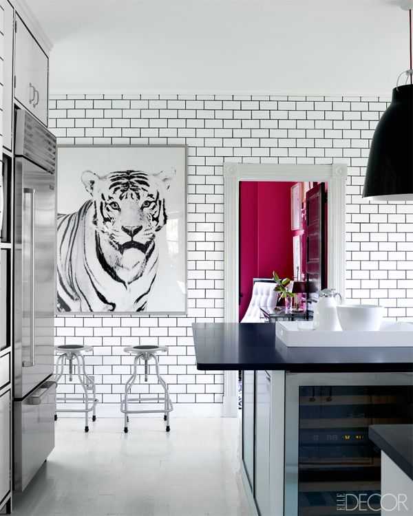 Белый цвет прекрасно подчеркивает способ укладки плитки под кирпич, который традиционно имеет насыщенный красно-коричневый оттенок.
