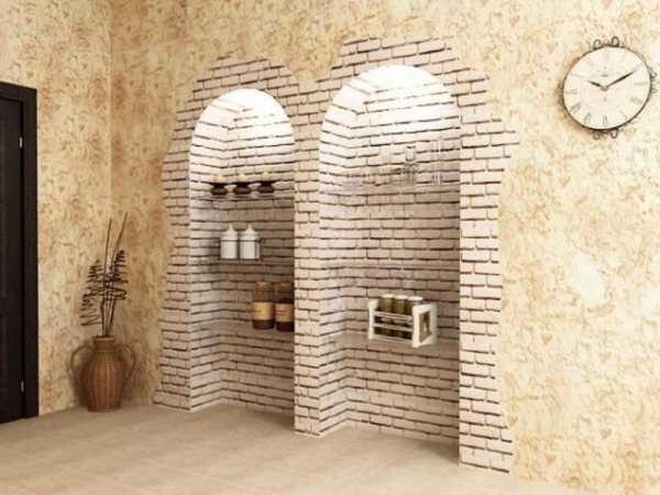 Подходить к декору прихожей необходимо с большой осторожностью. Даже белый кирпич в таком случае визуально уменьшит помещение. Но этого не стоит бояться, главное позаботиться о хорошем освещении, и не загромождать пространство мебелью. Выигрышно будет смотреться оформление дверного проема или места под зеркало. Если прихожая большого размера, то сделать кирпичной можно всю стену.