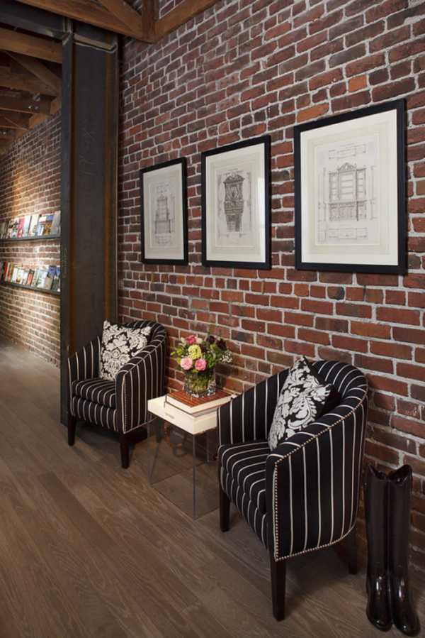 Красный кирпич и деревянные полы естественное решение и хороший выбор