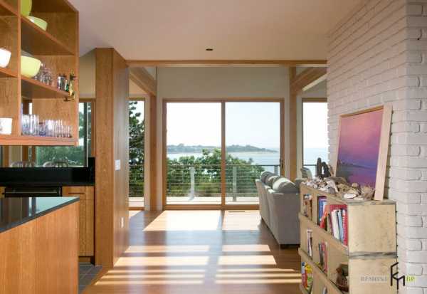 Сочетание белого кирпича и дерева в интерьере — простор и органичность