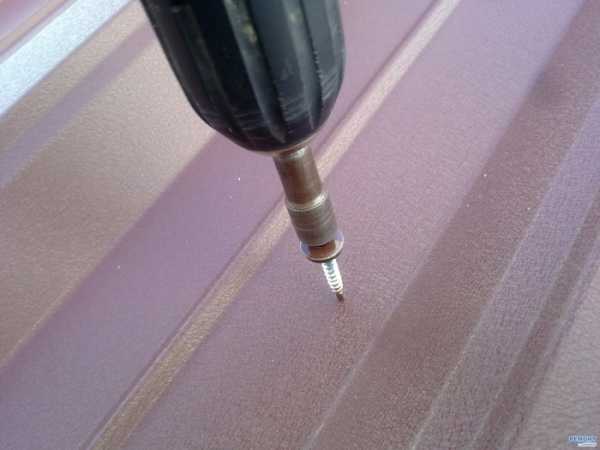 Если материал тонкий, шурупы просто вкручивают шуруповертом, они легко проходят насквозь, не повреждая покрытие. На толстых стальных листах в местах крепления их к обрешетке целесообразно сделать предварительно разметку и дрелью просверлить отверстия под саморезы.