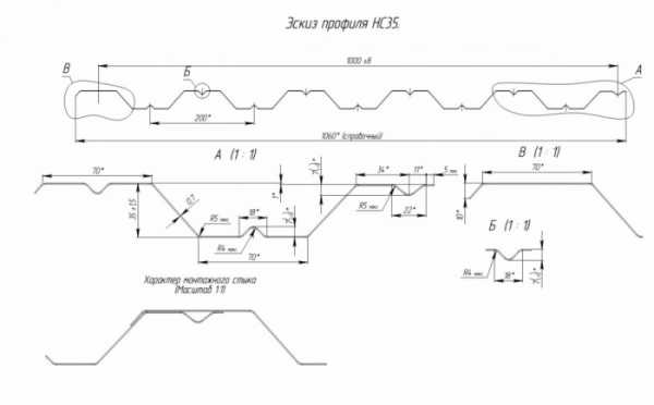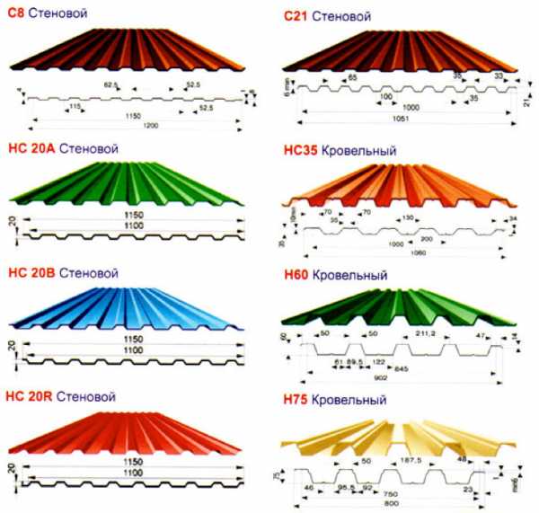 Для покрытия крыш используют кровельный профнастил марок Н60, Н75 и НС35. Кровельный материал выпускается как с полимерным покрытием, так и без.