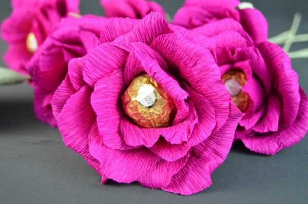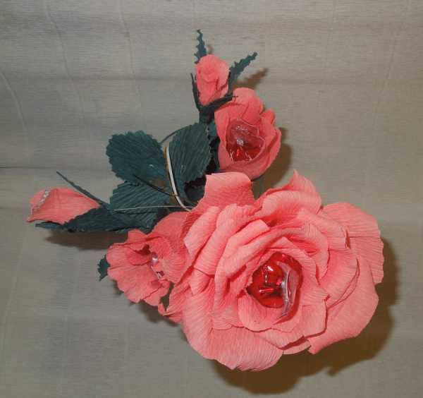 Розы из бумаги с конфетами – это не только элемент декора вашего дома, но и прекрасный презент для близкого человека. Конфетный букет, сделанный своими руками станет отличным подарком для воспитателя и учителя, но дети обязательно должны принимать участие в творческом процессе.