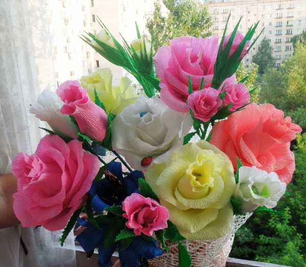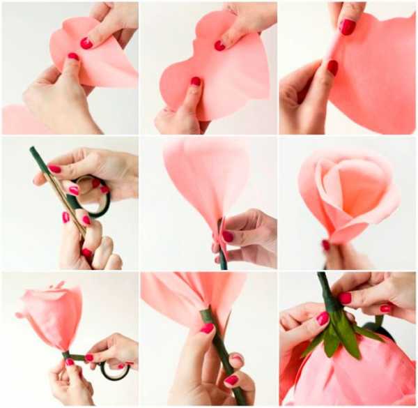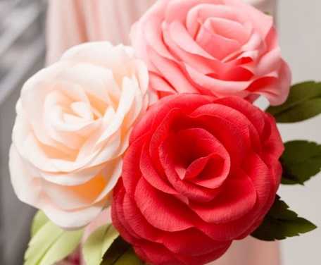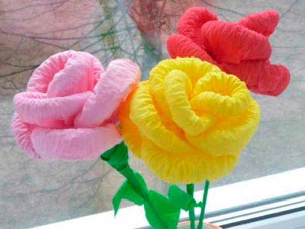 Согласно легендам, когда Афродита выходила из моря, пена с её тела превратилась в прекрасные белые розы. А когда богиня бежала в рощу, где погибал её возлюбленный, и поранила о шипы ноги, цветок окрасился в красный. Так появились алые розы. Сейчас, чтобы украсить дом этими растениями, не надо ни купаться, ни наносить себе увечья. А из пачки цветной бумаги выйдут бутоны всех цветов радуги.
