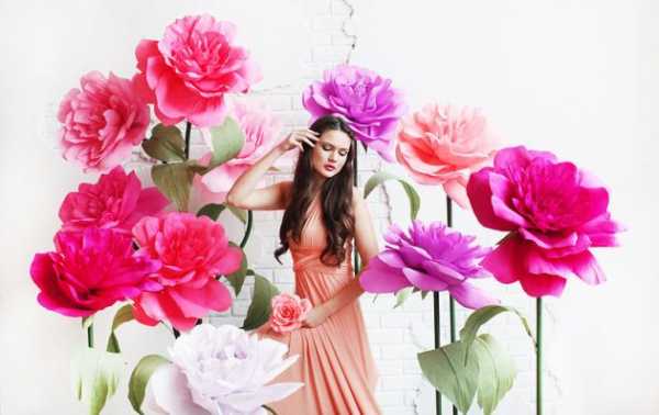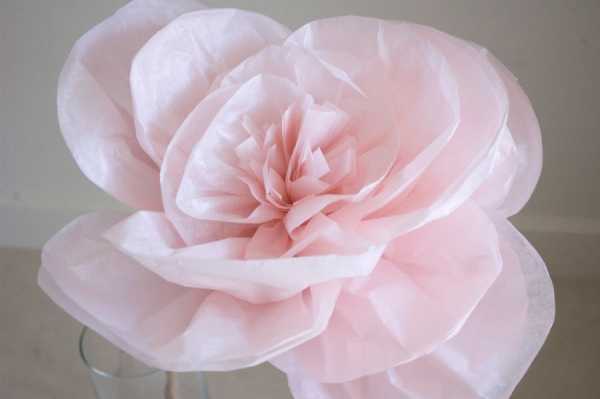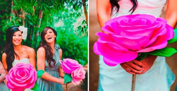 Роза из гофрированной бумаги может быть любого размера, вплоть до гигантского. А ещё такие цветы отлично подойдут для оригинальной фотосессии.