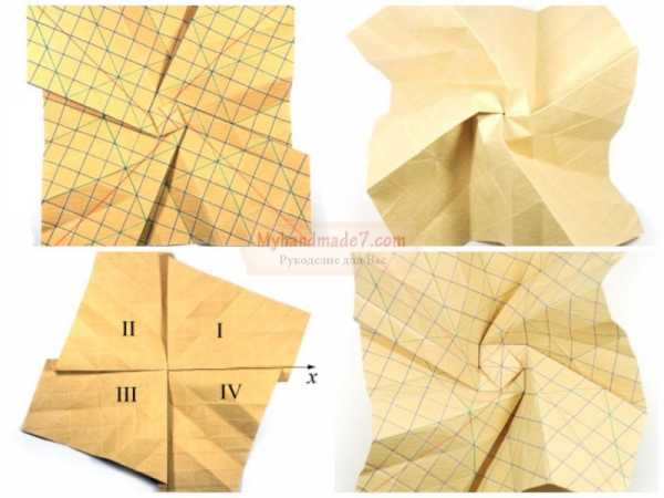 - Перегните все 4 вершины до середины и проведите пальцами по сгибам.