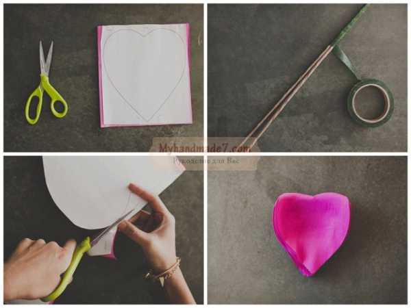 Берем для начала наши вырезанные лепесточки в виде сердечек. И по средине делаем надрез как показано на фото.