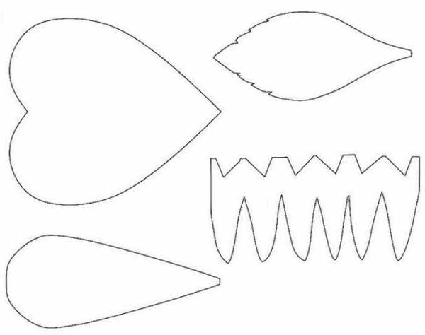 - Вырежьте из гофрированной бумаги 5 лепестков в форме капель и 15 лепестков в форме сердца.