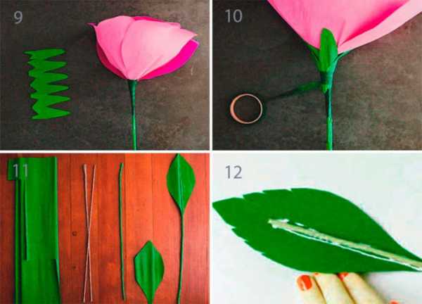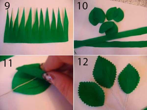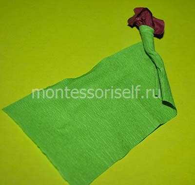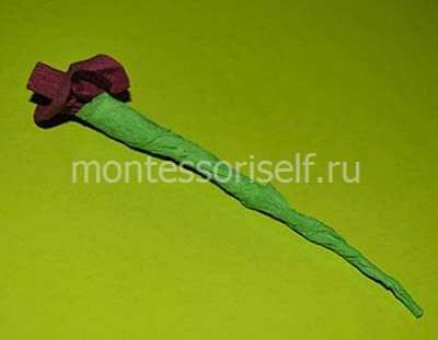 В конце проволочку оборачиваем полоской зеленой гофрированной бумаги и приклеиваем листик.