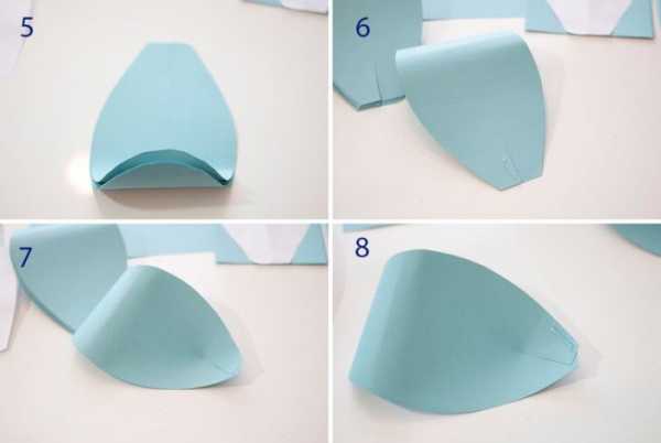 Далее склеиваем их как это показано на фото, наложив край одного лепестка на выступающий «хвостик». Для склеивания можно так же использовать двухсторонний скотч.