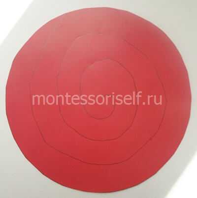 На листе красной не сильно плотной, но и не тонкой бумаги нужно нарисовать спиралевидный контур.