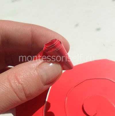 - Плотно сверните полоску, начиная с центра спирали. Для прочности конструкции добавьте немного клея в основание.