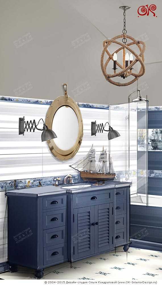 На фото: Дизайн совмещенного санузла в морском стиле