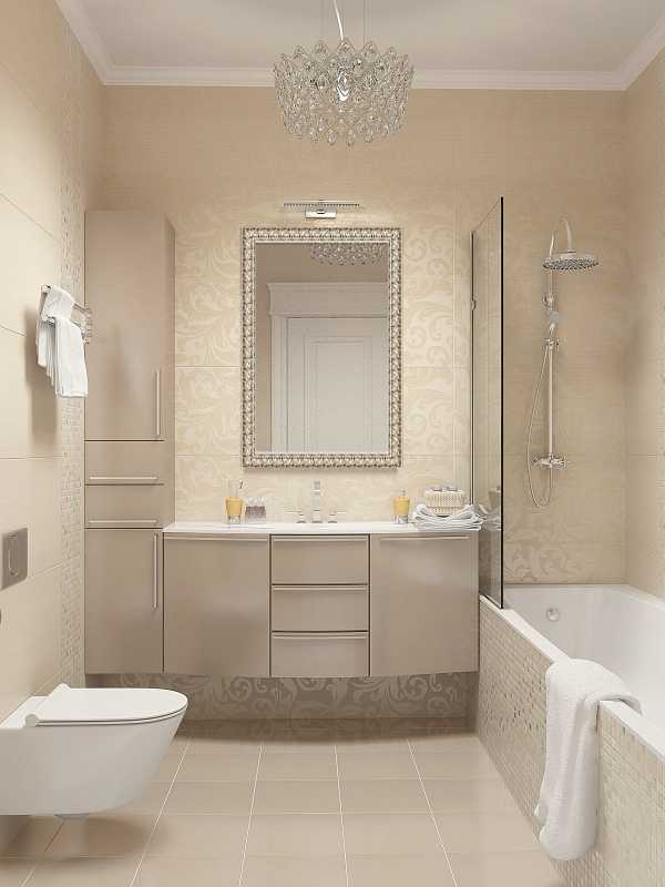 Бежевый кафель совсем необязательно должен иметь скучную однотонную расцветку. Он может, не выходя за рамки светлого монохрома, быть украшенным замысловатыми узорами. Бежевая плитка для ванной способна даже задать стилевую направленность композиции. Здесь все зависит от ее дизайна.