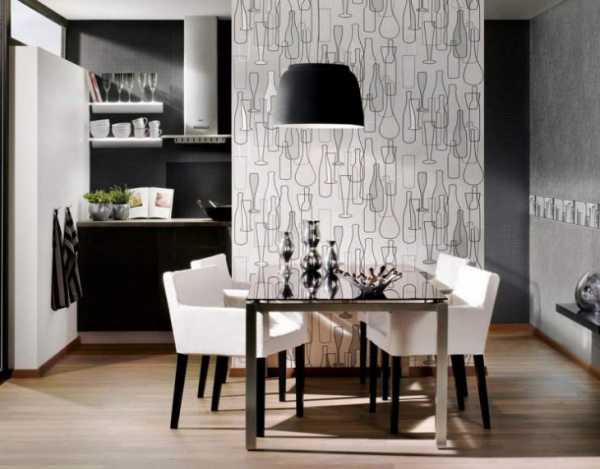 Модный рисунок-гравюра на стене столовой зоны кухни делает помещение уютным и стильнымВ этой статье мы постараемся описать наиболее интересные виды дизайна фотообоев. Расскажем об их сочетании с общим стилем помещения, отделкой, мебелью, техникой. Опишем варианты сырья для изготовления фотообоев, а также о способах их поклейки на стену.